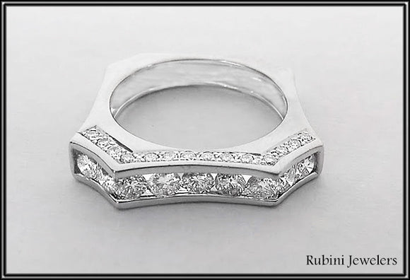 Two Tone Split Shank with Ribbon of Diamonds Ring