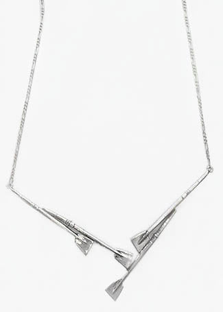 4 Oars with Attached Figaro Chain Necklace Sterling Silver