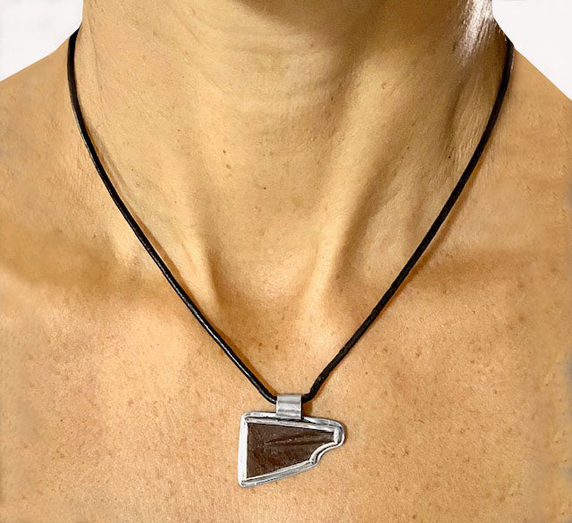 Carved Leather Blade Bezeled in Sterling Silver Pendant