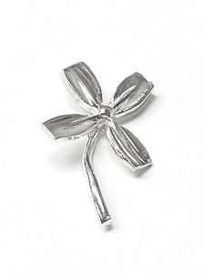 Clover of 4 blades is 3/4" long, with hidden bail. Shown in both 14k gold and sterling silver.