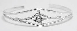 Sterling Silver. The single rowing boat measures about 1 inch wide. Fits wrists 5.5 to 6.5 inches, inside of bracelet is ~7 inches.