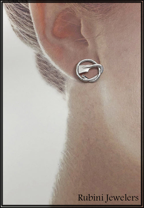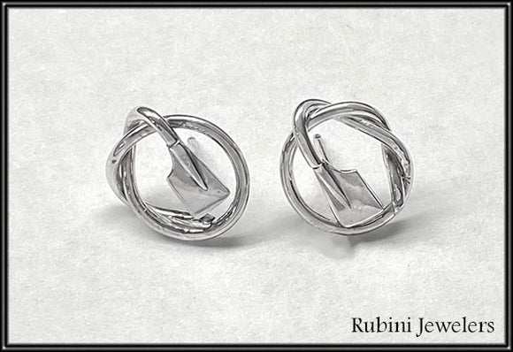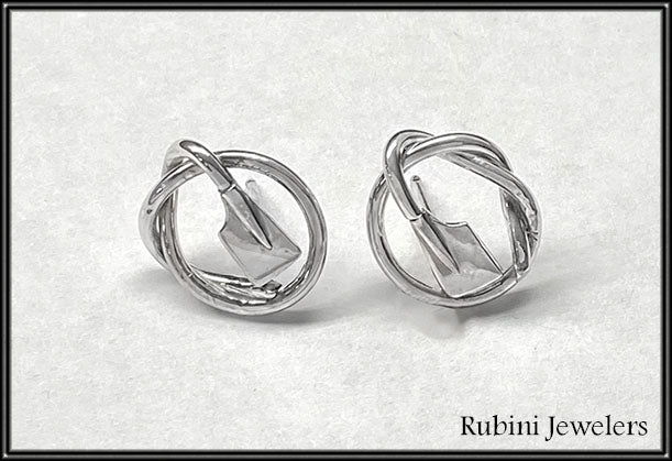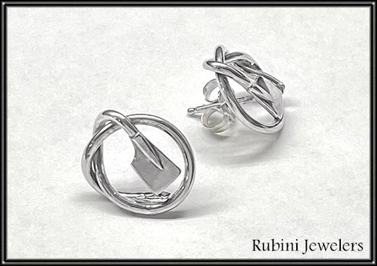Knot with Petite Rowing Blades Post Earrings Made by Rubini Jewelers.