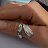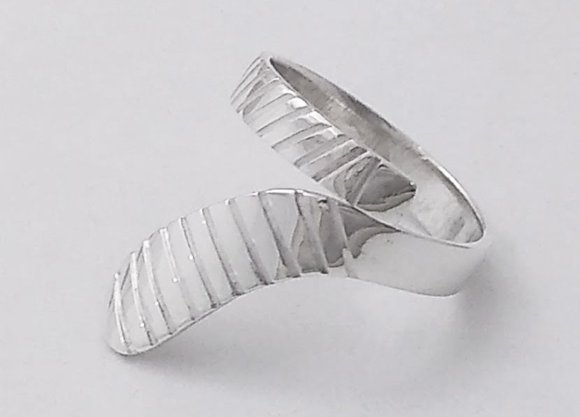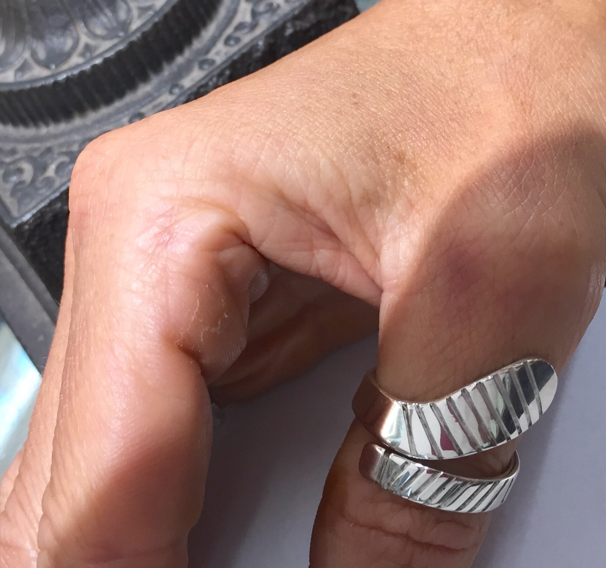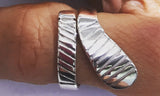 Sterling Silver. This wrap ring is even grander than our "large" ice hockey stick wrap ring. It's great for your thumb, for your index finger, middle finger, and even a larger ring finger. The blade (taped part) measures about 22mm long by 8mm wide.
