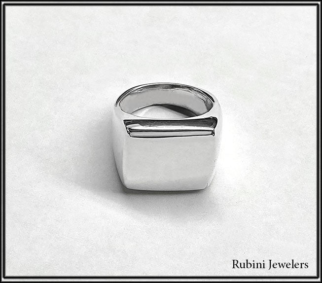 Large Silver Square Top Signet Ring