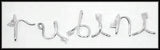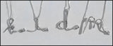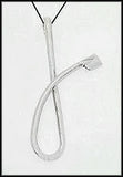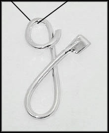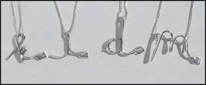 Sterling silver floating lower-case script initials with mini blade. Initials' measurements vary but range from .6 inch to 1.5 inches.