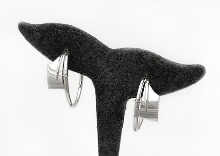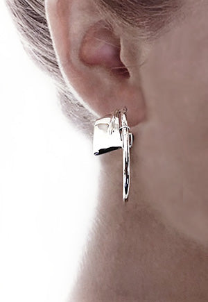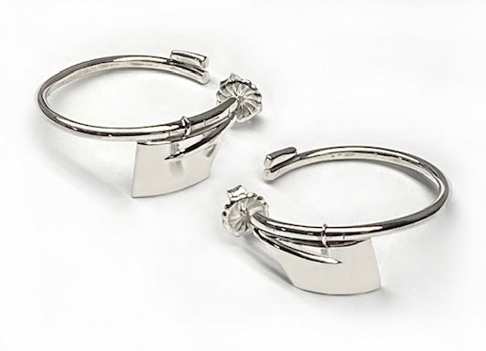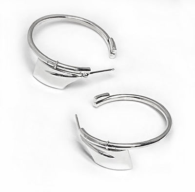 Sterling Silver. These rowing hoops are post style with a hatchet blade 18mm long by 8mm wide. Hoops are 21mm diameter and the silver wire that makes up the hoop is 2mm thick.