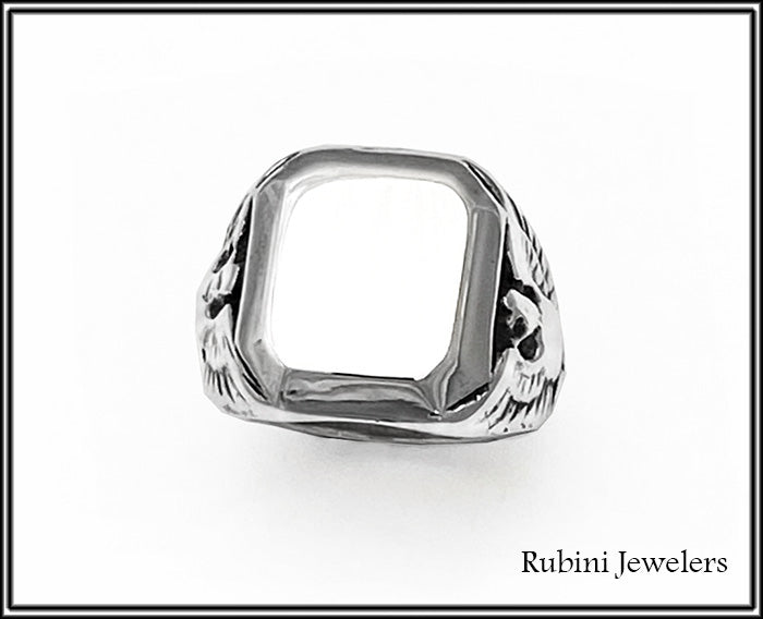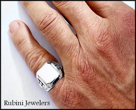 This ring is a great candidate for engraving: text here. We also do family crests, logos, designs and custom engraving, please inquire for pricing 703-548-5509 info@rubinijewelers.com.