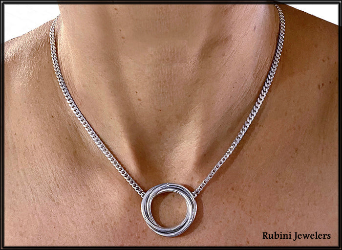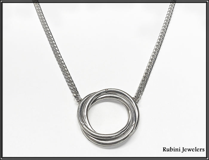 Silver Triple Ring Knot with Diamonds Necklace