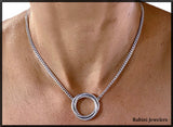 Sterling Silver. Diameter of circle is 31mm (1 1/4 inches), Chain is solid 3.5mm wide. Entire necklace is 18 inches long. Clasp is lobster style. The 3 natural diamonds are 1.5mm diameter, flush set, total weight of .045cts. Handmade.