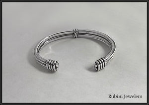 Sterling Silver. Handmade. Cuff measures 9mm wide, slightly flattened. Fits wrists 7.5 inches-9 inches.