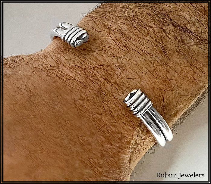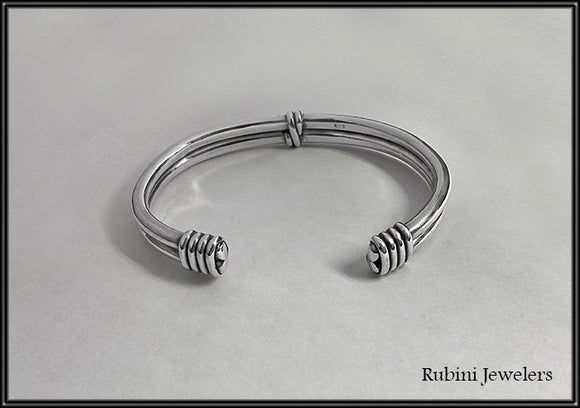 Silver Double Cuff with Wrapped Ends Bracelet